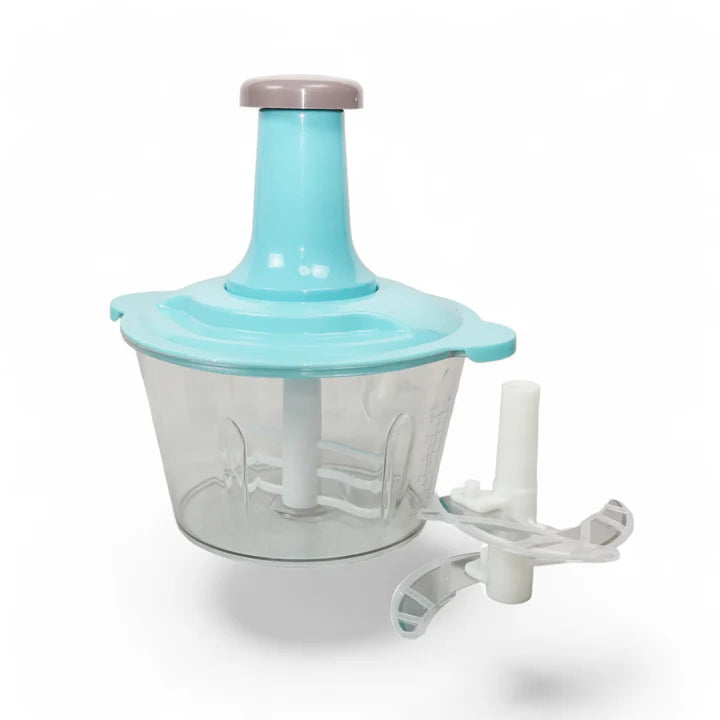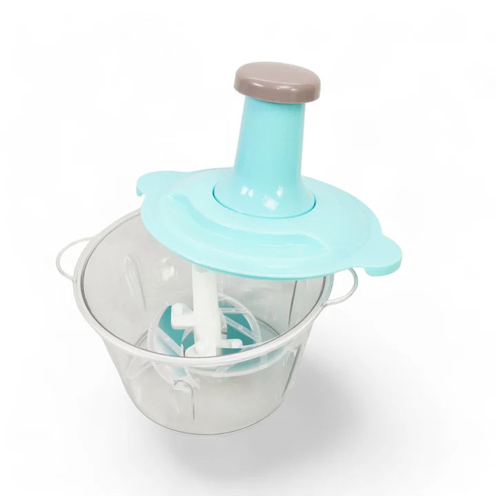 Chop vegetables, fruits, and herbs quickly and easily with this hand push chopper. No electricity needed - just push down to chop! Perfect for onions, garlic, nuts, and more. This manual chopper makes food prep fast and mess-free, with easy cleanup.